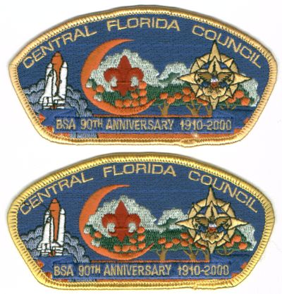 Central Florida Council SA-17roy blu bdr 2000BSA 90 yrs. SA-17:1blu bdr SA-18brt yel bdr 2000BSA 90 yrs.SA-18:1lt gld bdr SA-19red bdr 2000BSA 90 yrs. Sold only in person at council office> SA-20blk bdr 2000BSA 90 yrs.