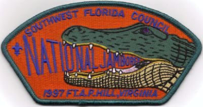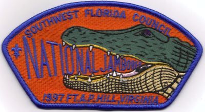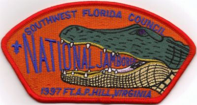 Southwest Florida Council 1997 JSP's 1997 JSPblu bdr 1997JSPwht bdr 1997 JSPred bdr 1997 JSPgrn bdr Issued to contingent after the jamboree. 1997 JSP smy bdr |Top| Council List|